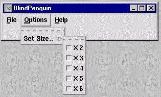 When this is selected, a sub menu with a list of sizes will appear. The user can select their preferred size by clicking in the box beside the size. These sizes represent the size to which BlindPenguin will be set.
